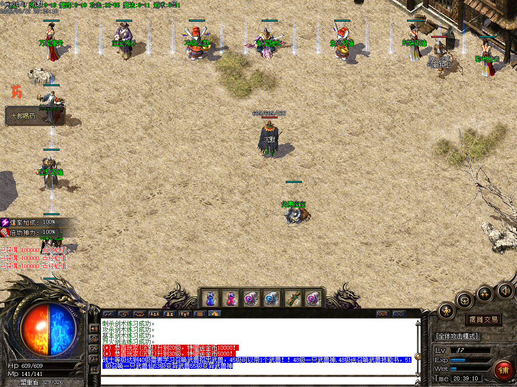 【法师介绍】:法师41级可诱惑蚂蚁,48级诱惑蚁后(前中期牛逼),52级火焰狮子,53级金甲骑士(毒素攻击),58级金甲战士(毒素攻击)。除了蚂蚁洞,白日门也会刷召唤怪物..!